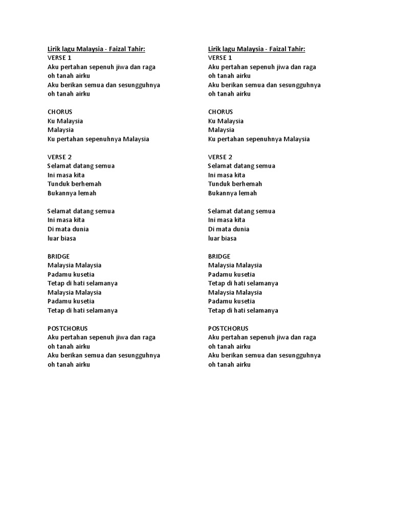 Lirik Lagu Negaraku Faizal Tahir - lavytra